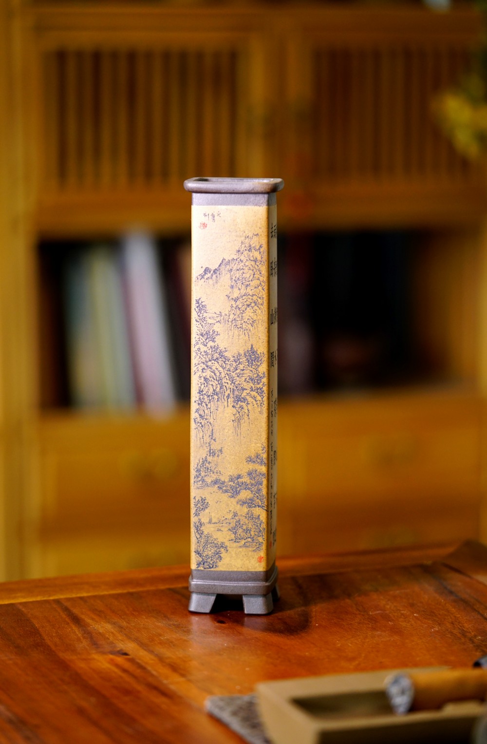 2012年创立“八尺·一寻紫砂工作室”,专研紫砂矿料、紫砂陶刻及制作技艺。作品风格简约明朗,典雅蕴藉,文心流衍。多以小写意入壶,寥寥几笔,虚实映照,行气如虹,尽显书斋风雅。常与陆康、何曦、马新阳、毕立伟等知名书画家进行合作,作品被各大博物馆与私人收藏。