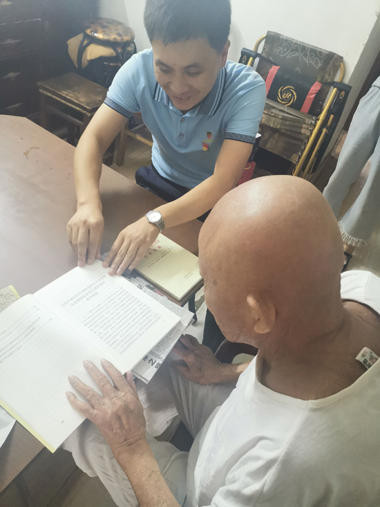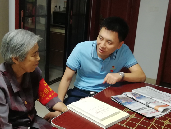 吴文涛96岁高龄、77年党龄,建国前老党员;张玉珍83岁高龄、45岁党龄,社区党员志愿者骨干,长期以来坚持服务社区广大居民群众。作为主题教育联系点领导,唐兵主任分别向2名老党员介绍了街道办事处、社区党委的相关工作,以及自己承担的主题教育联系点领导责任,对老党员们长期活跃在基层一线服务群众、传播正能量表示敬意,希望他们做好传承的同时,也要保重身体,有困难及时向街道、社区反映,并要求社区党委、广大党员在主题教育中,要多向老党员、老同志请教、取经,把初心使命变成锐意进取、开拓创新的精气神和埋头苦干、真抓实干的自觉行动。