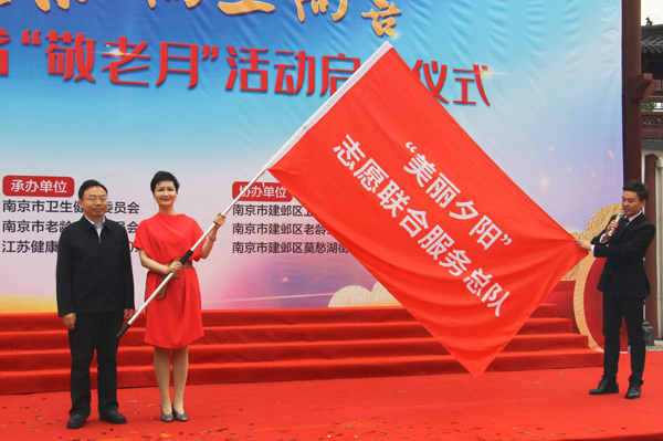 为了献礼2019江苏省“敬老月”,“美丽夕阳志愿服务总队”完成了提档升级。启动仪式上,江苏省广播电视总台副台长李声为升级的“美丽夕阳志愿服务总队”授新队旗,把活动氛围推向高潮。