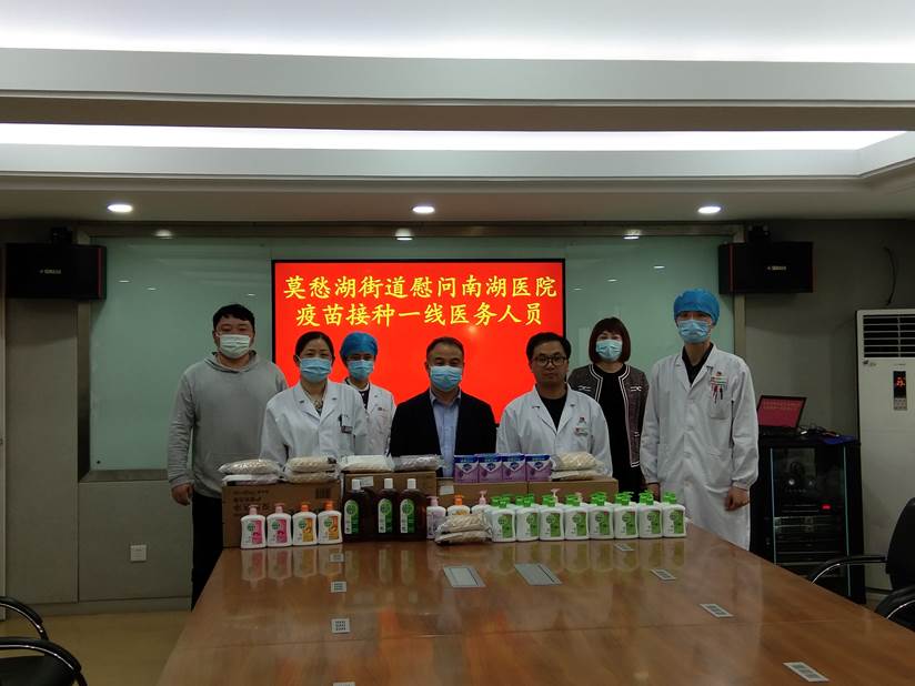 5月2日,莫愁湖街道主要负责人带队前往南湖医院、滨湖医院慰问疫苗接种的一线医务人员。莫愁湖街道地处南京市建邺区北部,属于老旧小区的集中区域,老龄人口较多。街道因地制宜,把疫苗接种搬到居民“家门口”,让疫苗“多跑路”、居民“少跑腿”。居民们纷纷表示,“家门口就能疫苗接种,不用预约不用排队,真的太方便啦!”有的居民在散步时听闻疫苗接种不用排队,立刻前来接种。
