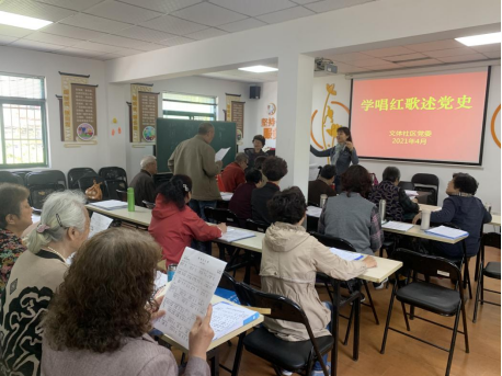 文体社区开展“每月学唱一首红歌·学唱红歌述党史”系列活动,积极选唱讲述党员与群众鱼水情的红歌,以增进党员干部的群众意识、群众观念。通过支部书记讲述红歌背后的革命史、音乐老师逐字逐句教学唱、党员分组大比拼等方式开展唱红歌学党史,推动党史学习入脑入心。