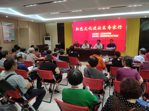 中国江苏网6月17日讯(记者 景雯雯 通讯员 王平平) 弘扬党的优良传统,发扬社区红色文化,增强居民和谐幸福感,激励广大党员干部进一步坚定信心、振奋精神、砥砺奋进。6月12日,在江东门社区党群服务中心内举办了一场由江苏省社科联主办,莫愁湖街道江东门社区承办的“红色文化进社区专家行”活动,本次宣讲由渡江胜利纪念馆副书记、副馆长,中国中共文献研究会理事吴小宝为社区党员群众宣讲《永远的榜样—周恩来的初心与精神》。