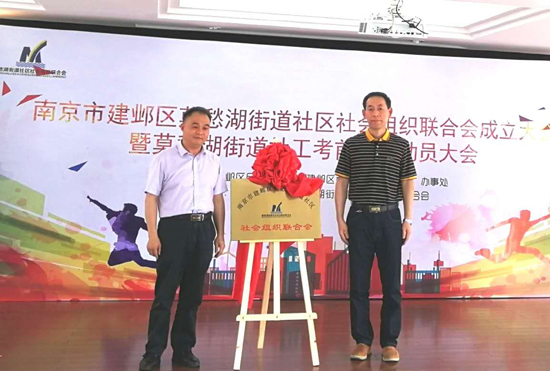 中国江苏网6月21日讯(通讯员王德虎 记者景雯雯)为大力培育发展社区社会组织,今天下午,南京市建邺区莫愁湖街道召开社会组织联合会成立大会。社联会的成立,旨在使社会组织成为加强社区治理体系建设、推动社会治理重心向基层下移、打造共建共治共享社会治理格局的重要载体。