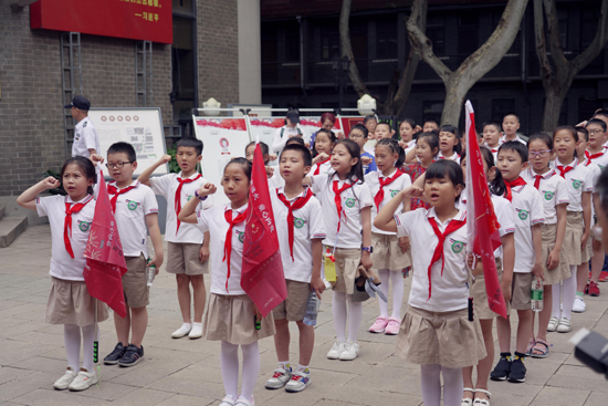 活动第二站抵达位于梅园新村街道的中国共产党代表团梅园新村纪念馆。在周恩来总理铜像前,同学们肃穆站立,面对鲜红的中国共产党党旗,举起右手庄严宣誓:我热爱中国共产党,热爱祖国,热爱人民,好好学习,好好锻炼,准备着:为共产主义事业贡献力量!时刻准备着!…… 一张张稚嫩的脸庞,一双双坚定的目光,在一声声有力的誓言中,同学们懂得,小小的肩膀将要担负起中华民族伟大复兴的中国梦。
