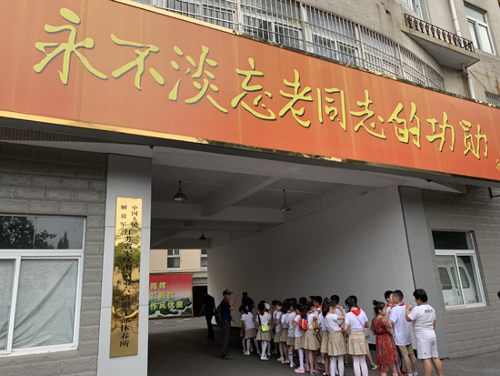 本次活动的最后一站,来到了南京市第六离职干部休养所,在这里社区邀请参加过汾孝战役、保卫延安战斗、宣瓦战役、荔北战役、扶眉战役、兰州战役、抗美援朝战争的革命老军人,吕金旺老人给同学们授课。吕老一身经历的大小战斗不计其数,他重点讲述了抗美援朝战争中的战斗故事。当时部队刚入朝鲜,人生地不熟,语言又不通,开展敌后游击队,困难重重。战士们白天要投入激烈的战斗,吃喝拉撒都在坑道里,晚上要趁夜幕遮挡展开侦察,这样恶劣的生存环境,对身心是极大的挑战,在坑道一待就是几个月,很多战友牺牲了,两百多人的队伍只有七十多人生还……说到这吕老不禁黯然神伤,他告诉同学们战争是残酷的,要珍爱和平,珍惜革命先烈创造的幸福生活,对在座的家长及同学提出两点要求,1、要家长要尽职尽责,让孩子从小接受爱国教育。2、希望同学们不忘历史,努力学习,长大为国家建设贡献力量。课后学生代表向吕老献上鲜花和果篮以表达对老一辈革命军人的敬意之情。