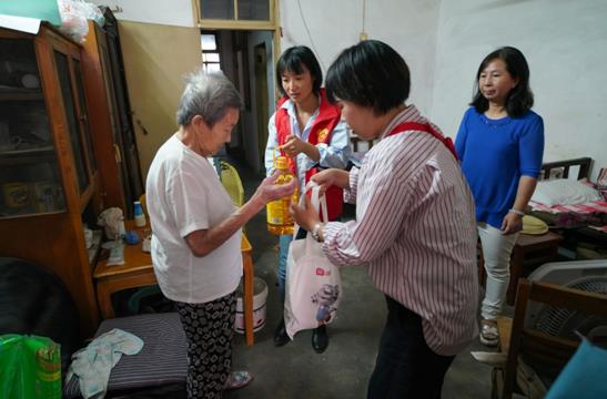考虑重阳节即将到来, 活动还给辖区90岁老人准备了寿桃。国美零售还为老人们准备了色拉油、有机小米和有机豆子等节日慰问品。92岁的曾奶奶收到慰问特别感动,再三感谢企业的关爱。