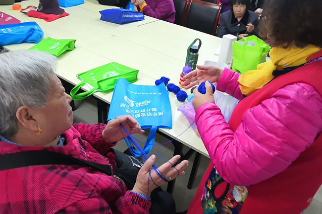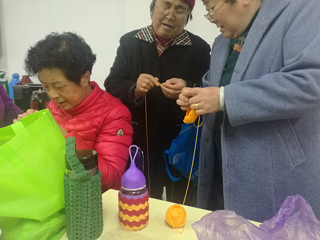 中国江苏网讯(通讯员 张婧雅)为提高社区老年人手脑协调能力,增进老人之间的情感交流,兆园社区独居老人俱乐部于11月26日下午在社区活动室开展杯套编织活动。