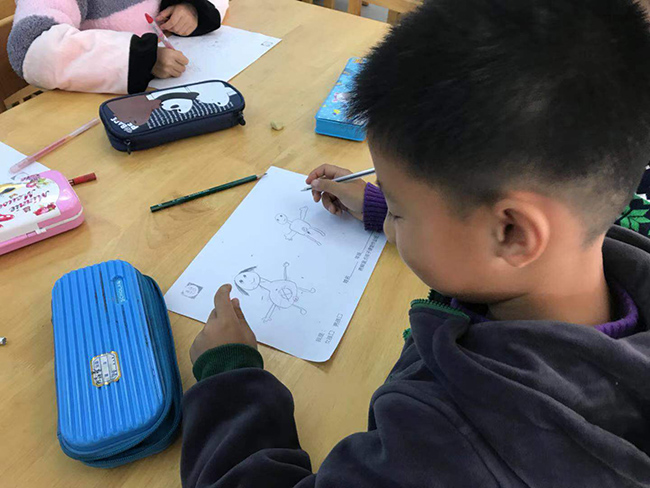 祝老师首先和学生们介绍了自己,随后发给大家上面印着卡通形象的男生、女生的纸张,让孩子们画出自己认为身体的隐私部位。大家一开始都很羞涩,有的同学即使知道哪些是隐私部位也因为羞愧而迟迟不肯画。祝老师告诉大家,这些身体部位对我们来说很重要,我们要了解它们、保护好自己重要的隐私部位。通过可爱的卡通形象,让孩子们直观地了解隐私部位,大家渐渐放松下来,开始踊跃的发言。有的同学向老师提出自己感到好奇的问题, 通过祝老师的讲解,同学们知道了什么是身体的隐私部位,知道了在生活中要怎么保护隐私部位,懂得身体隐私部位不能给别人随便看和随便摸。